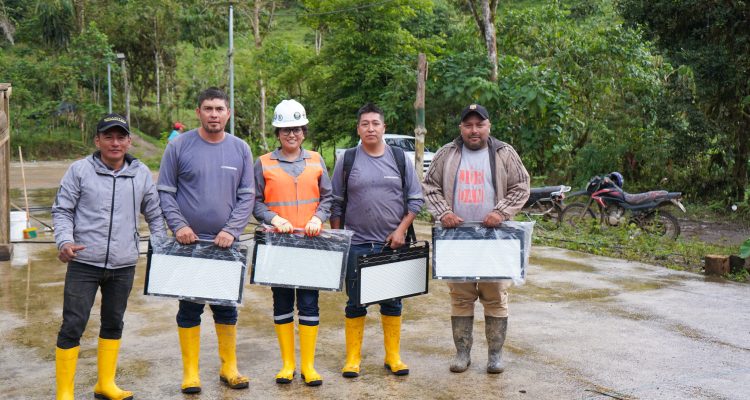 Las Naves, 1 de marzo de 2025.- Como parte del compromiso social de la empresa minera del proyecto Curipamba El Domo, se realizó la entrega de 4 luminarias adicionales para la cancha del recinto Panecillo.